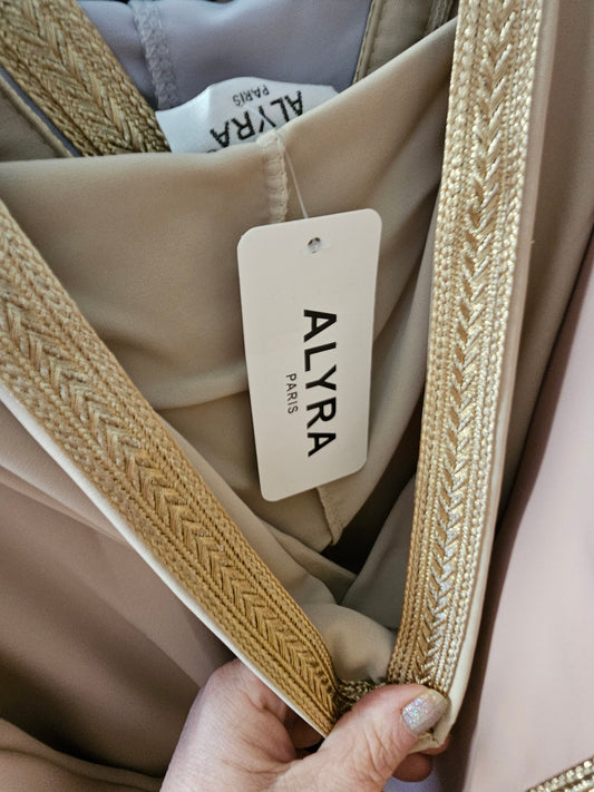 Abaya franges rose poudré
